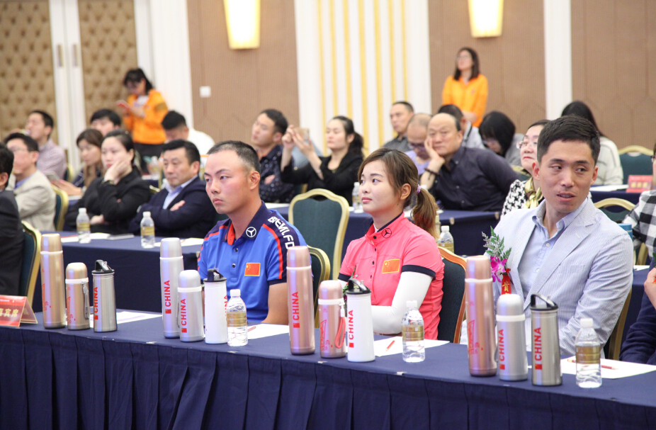 国家体育总局小球运动管理中心运动一部副部长金宏文、运动一部国家队主管贾吉坡、中国高尔夫球队队员代表张维维等、上海市促进中小企业发展协会办公室主任郑晓东、思乐得保温杯总经理张斌共同出席了出征会。
